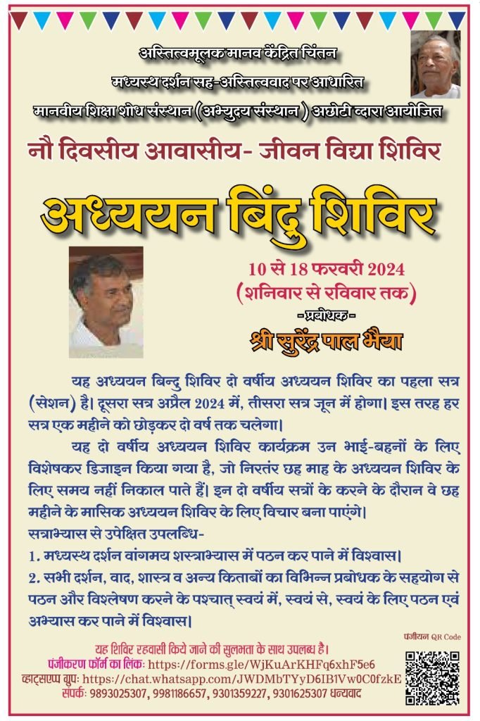 • अस्तित्व मूलक मानव केन्द्रित चिंतन मध्यस्थ दर्शन सह अस्तित्ववाद पर आधारित जीवन विद्या परिचय शिविर