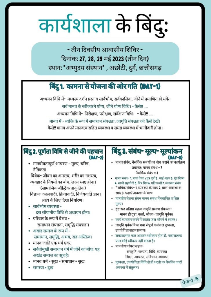 दिनांक : 27, 28, 29 मई 2023 ( तीन दिन )स्थान: अभ्युदय संस्थान, अछोटी, दुर्ग छत्तीसगढ़