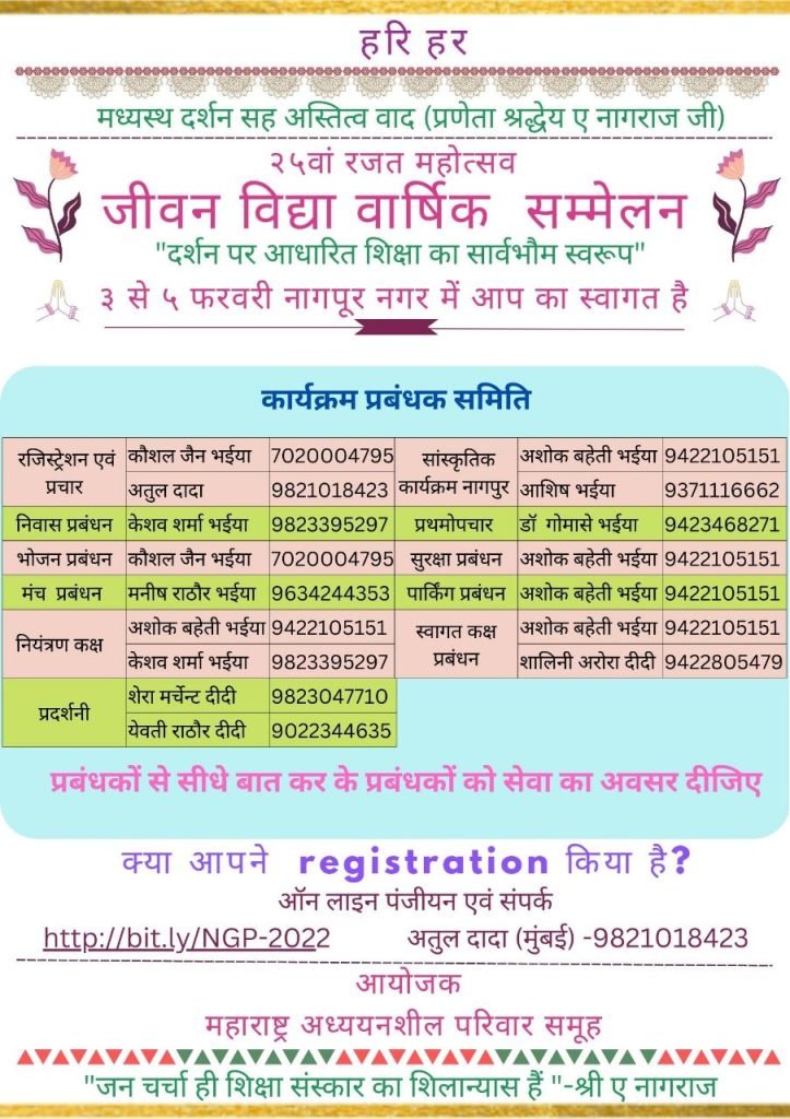 • जीवन विद्या राष्ट्रीय सम्मेलन में volunteers  के रूप में सहयोग देने के लिए अपना रजिस्ट्रेशन करें