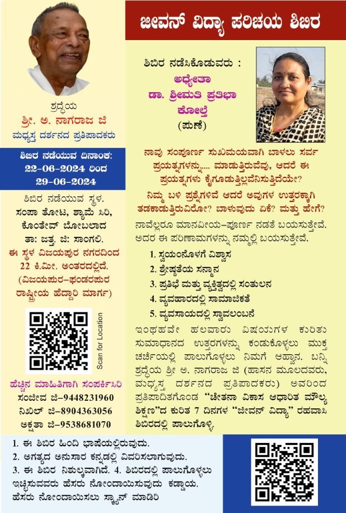 इन समाधान के लिए खुलकर चर्चा करने के लिए मिलें… आइये मिलते हैं, श्रद्धेय श्री ए. नागराज जी (प्रणेता – मध्यस्थ दर्शन) द्वारा समर्थित “चेतना विकास मूल्य शिक्षा”