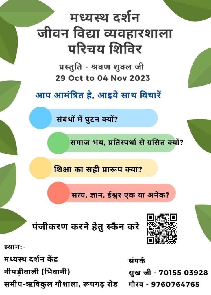 स्थान:-मध्यस्थ दर्शन केंद्र नीमड़ीवाली (भिवानी)समीप ऋषिकुल गौशाला, रूपगढ़रोड
