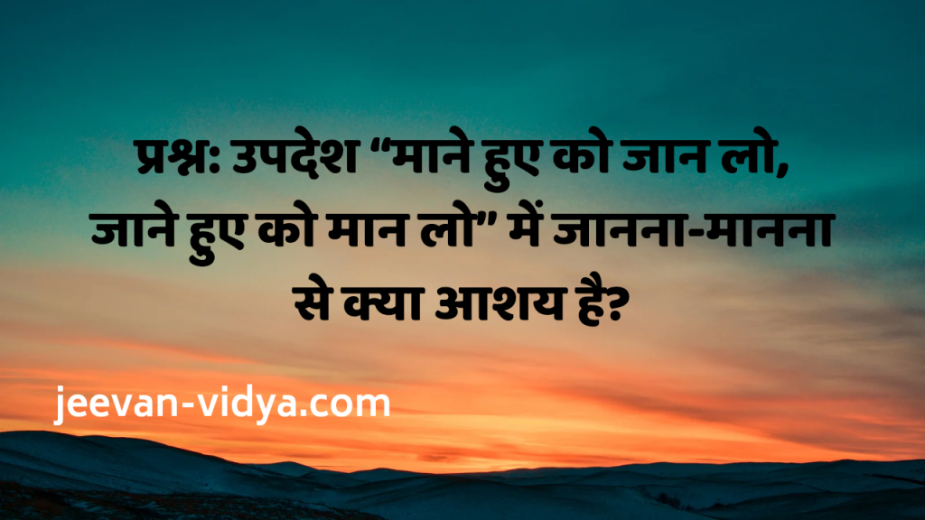 प्रश्न: उपदेश “माने हुए को जान लो, जाने हुए को मान लो” में जानना-मानना से क्या आशय है?